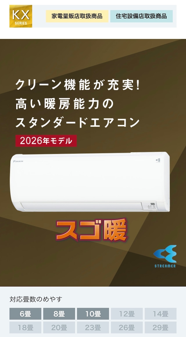 ◉6畳用◉基本工事込み(屋外配管カバー込み)◉10年延長保証込み◉ダイキンスゴ暖KXシリーズエアコン S226ATKS-W