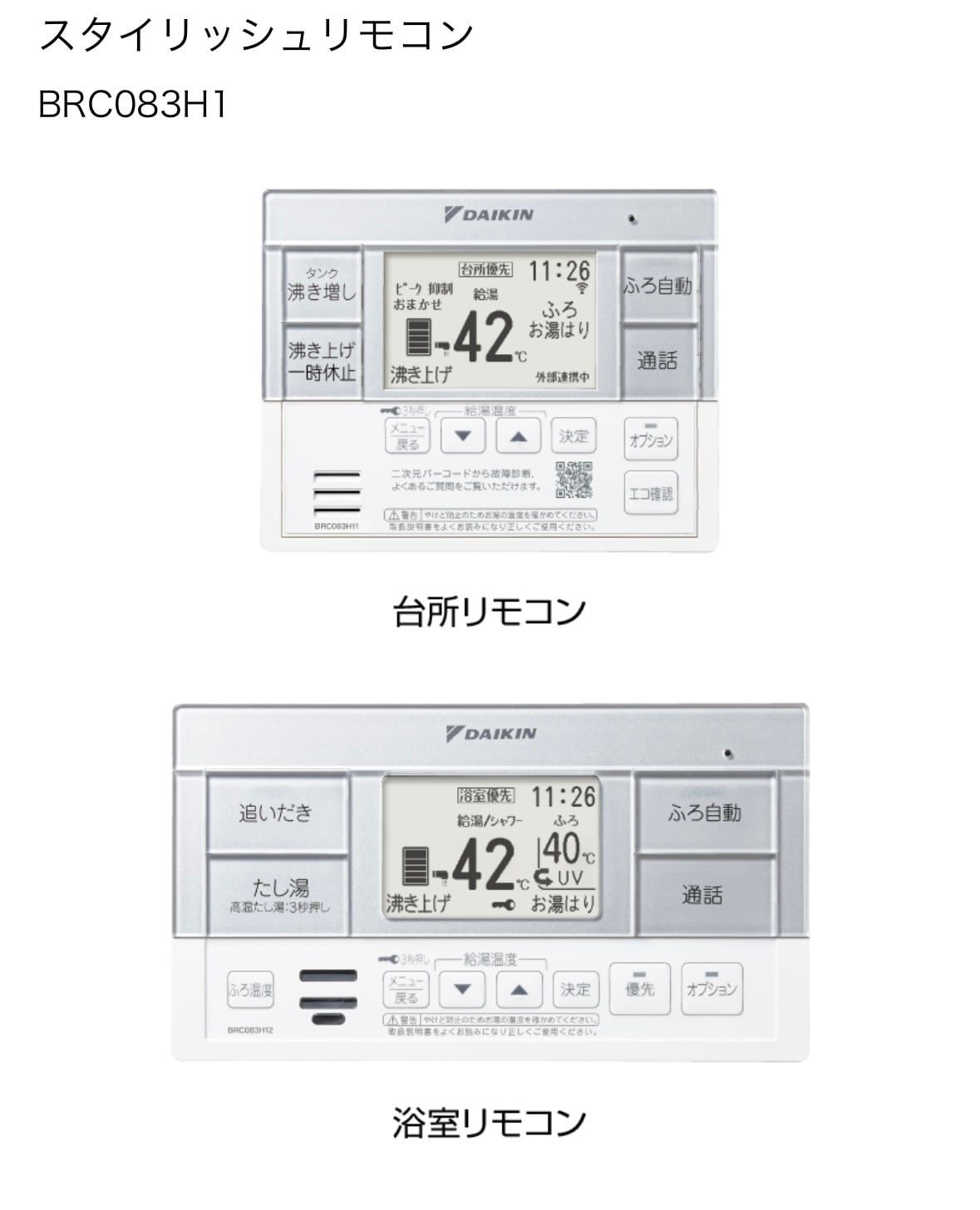 ・スタイリッシュリモコン(BRC083H1)orブラックリモコン(BRC083H1K)込み