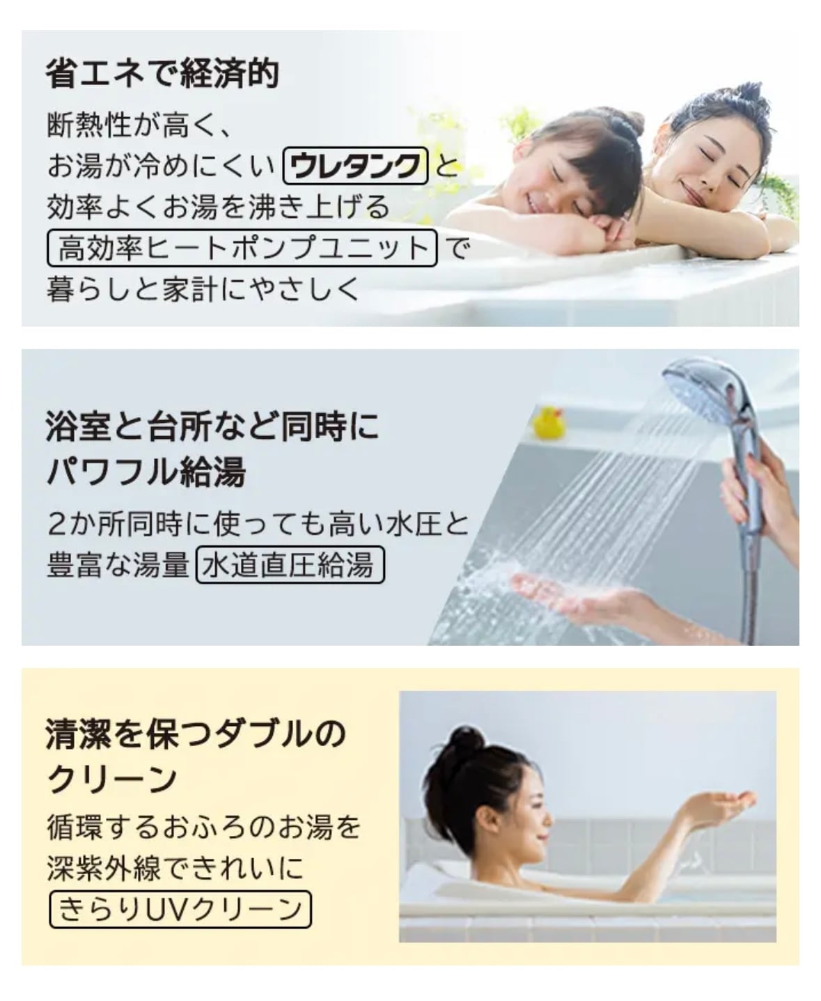 このエコキュートは、460Lの大容量タンクを備えており、4〜6人のご家族にぴったりの湯量を提供します。寒さが厳しい季節でもスムーズにお湯を供給できる安定した性能を誇り、家族全員が満足できる快適な生活を実現します。
